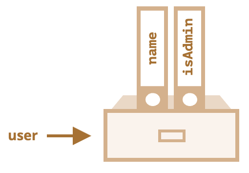 서랍장을 상상하면 객체를 이해하기 쉽다. 서랍장 안 파일은 프로퍼티, 파일 각각에 붙어있는 이름표는 객체의 키라고 생각하시면 된다. 복잡한 서랍장 안에서 이름표를 보고 원하는 파일을 쉽게 찾을 수 있듯이, 객체에선 키를 이용해 프로퍼티를 쉽게 찾을 수 있으며 추가나 삭제도 마찬가지이다.