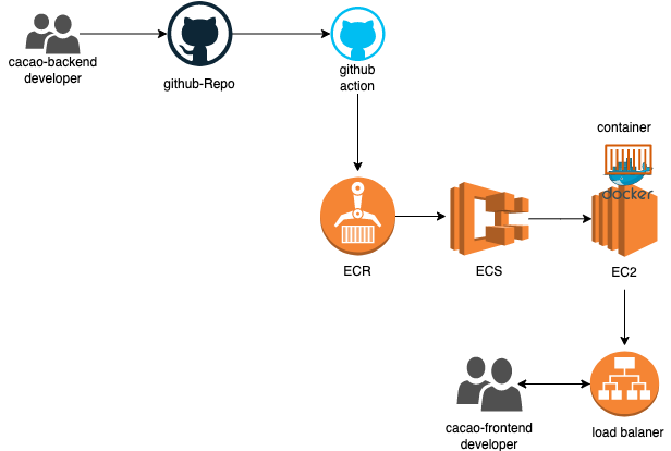 먼저 github actions을 이용해서 우리의 프로젝트를 이미지를 만든 후 ecr에 푸쉬하고 푸쉬된 이미지를 ecs를 통해서 ec2안에서 컨테이너로 돌렸다. 말로는 간단하고 쉬웠지만 여러가지 문제점이 있었다.