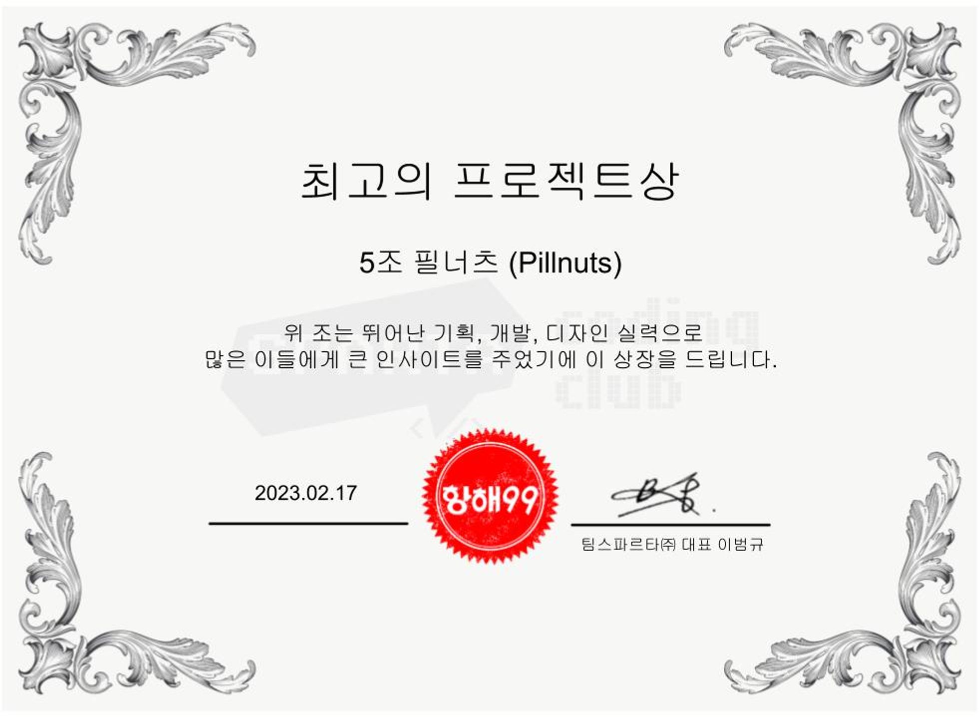 또, 고맙게도 여러 사람들이 우리 프로젝트를 좋게 봐주셨는데 프로젝트 상도 받았다. 팀장으로서 팀원분들게 고마웠고 열심히 한 보람을 느꼈다. 물론 우리가 잘 한것이 아닌 디자인, 프론트분들이 잘 해주셔서 받은 상 같다는 생각이 드나 우린 팀이니까! 이것으로 이력서에 한 줄 추가 할 수 있을 거 같다! ㅋㅋㅋ