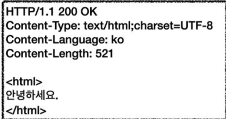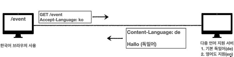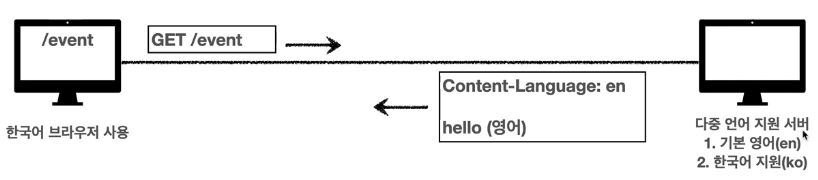 한국어 브라우저를 사용하여 외국 사이트에 들어갈 때 외국 사이트에 기본 언어는 영어고 서브 언어로 한국어도 지원한다고 되어있다. 그러면 클라이언트가 한국어인지 아닌지 아무런 정보가 없으니 서버에서는 영어 관련된 내용으로 한국어 브라우저에 응답을 해준다. 그럴 때 Accept-Language:KO로 전달하면 한국어를 원한다라고 클라이언트에서 서버로 알아서 전달이 된다. 그럼 서버에서는 기본 언어는 영어이지만 한국어도 지원하기 때문에 알아서 클라이언트가 원하는 한국어로 바디에 뿌려준다.