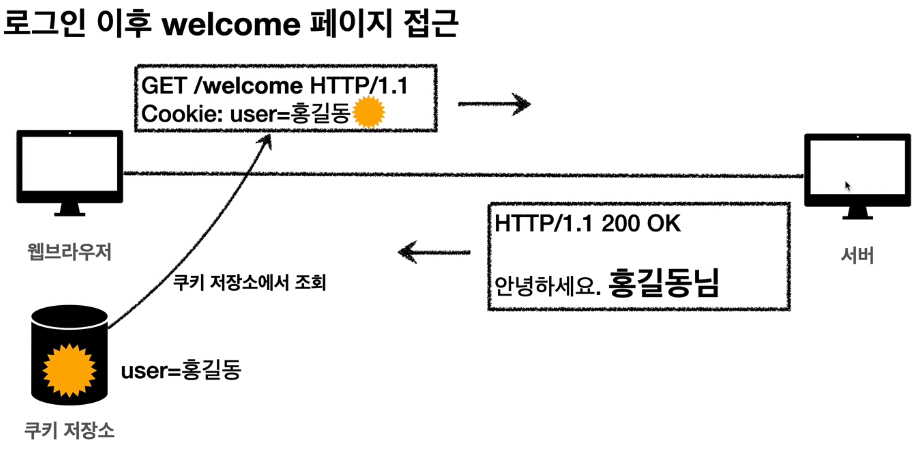 | 만료 시점 | 쿠키 저장시 설정 (브라우저가 종료되도, 만료시점이 지나지 않으면 자동으로 삭제되지않음) |