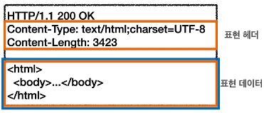 표현은 요청이나 응답에서 전달할 실제 데이터를 뜻하며, 표현 헤더는 표현 데이터를 해석할 수 있는 정보를 제공한다.