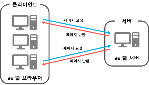 - 모든 사용자는 같은 응답의 결과를 웹페이지에 요청하고 응답받는다.