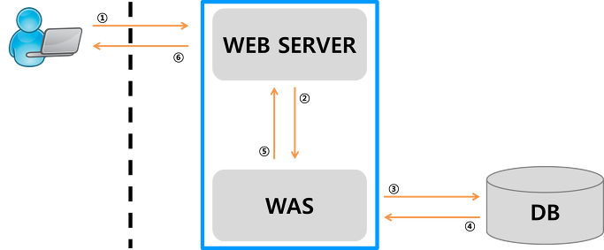 WAS서버에서는 데이터를 동적으로 처리하기 위해 DB 조회, 여러 개의 트랜잭션 관리, 비지니스 로직 처리 등의 기능이 요구되며 사용자의 요청에 의해 다르게 보일 수 있는 웹사이트의 인터랙티브 부분을 처리한다.