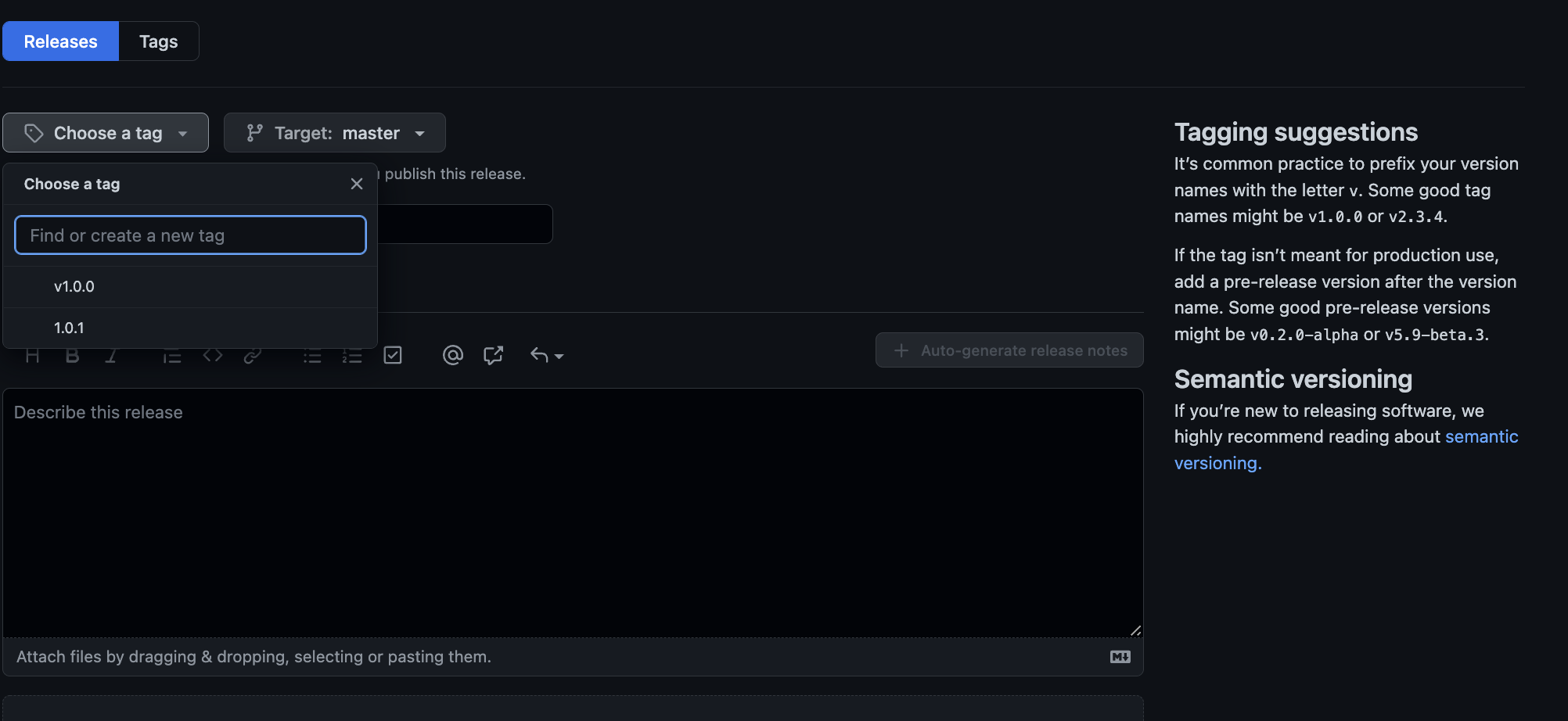 - Choose a tag: v1.0.0