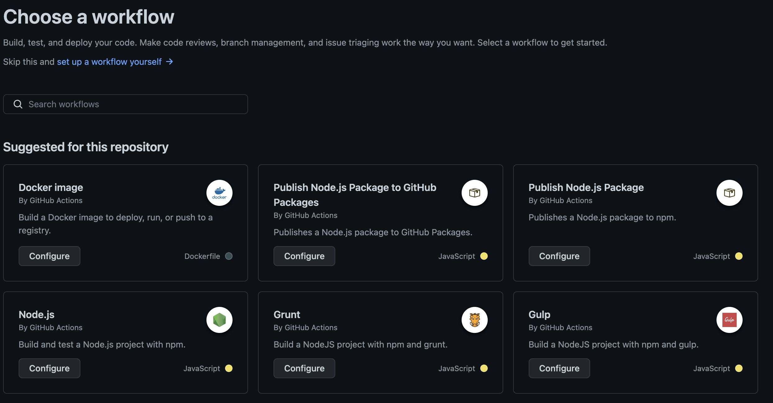 먼저, 해당 레포에 깃허브 액션에 들어가 도커이미지 워크플로를 만든다.