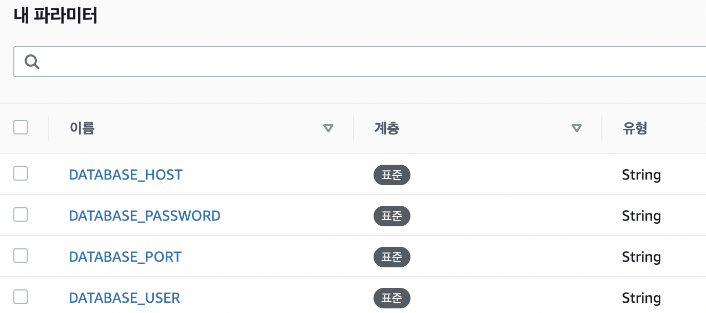 - AWS Parameter Store 서비스와 AWS CLI를 통해 환경 변수를 전달할 수 있어야 합니다.
