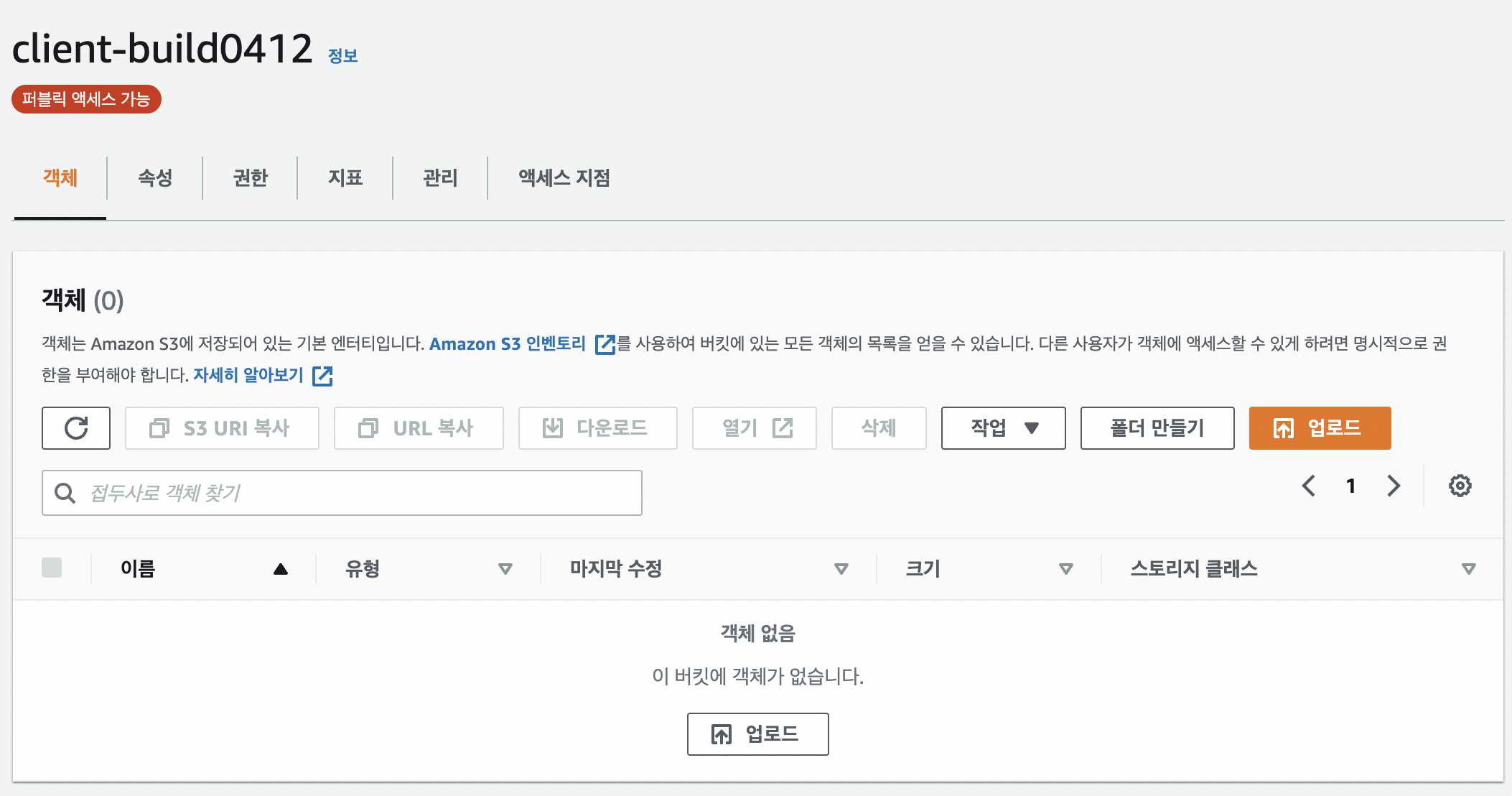 이와 같이 버킷에 들어가면 새로운 버킷이 생기는데 이는 정상이며, 원래 버킷으로 들어가면 배포가 된 모습을 볼 수 있다.