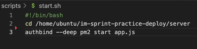 스타트 역시 서버를 시작하는 코드가 들어가있다. sh파일은 appspec 로케이션에 위치인 최상위폴더에 scripts폴더에 넣는다.