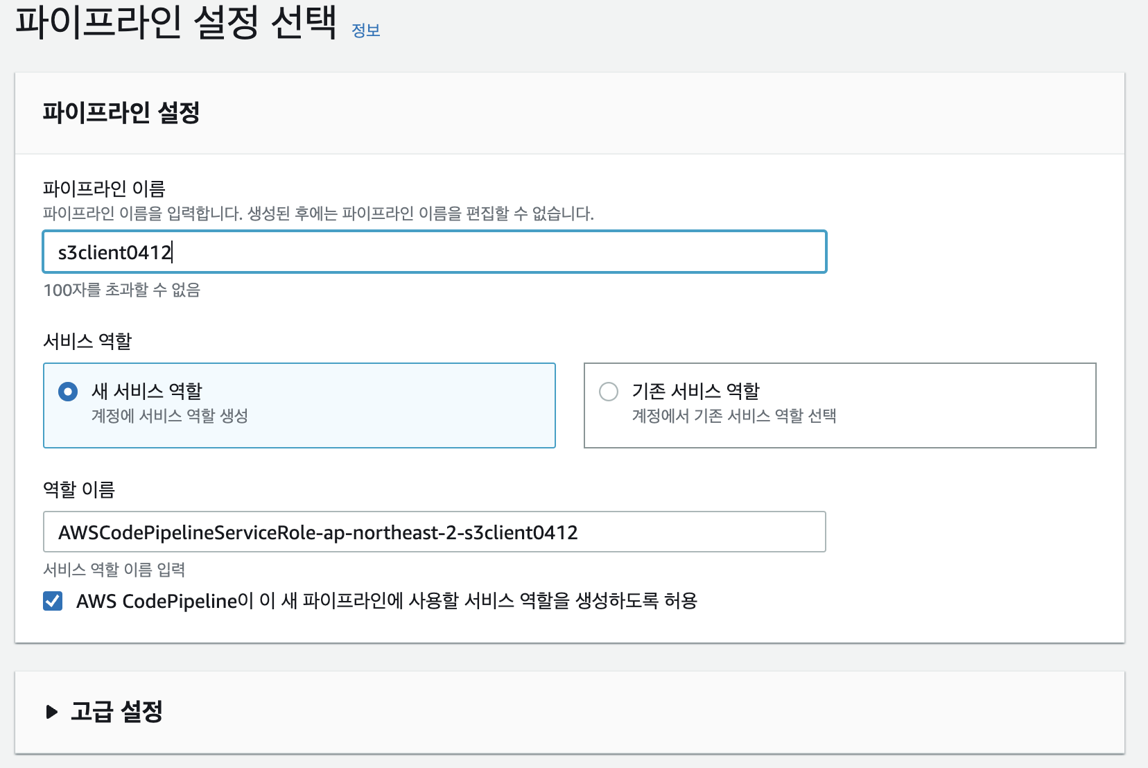 그 후 code pipeline으로 가서 파이프라인 생성을 시작한다.