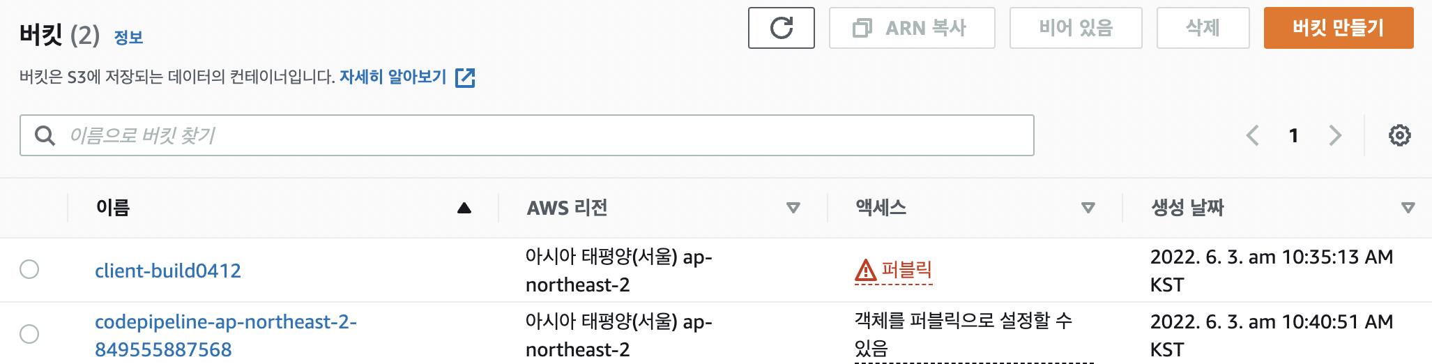 aws pipeline을 이용해서 배포 자동화를 하는 스프린트였다. 클라이언트는 무척 쉽게 하였다. 우선 s3버킷을 만든다.