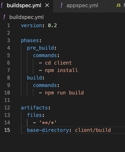 그리고 code build를 이용하기 위해 buildspec.yml 파일을 최상위 폴더에 만든 다음 git hub에 푸쉬한다.