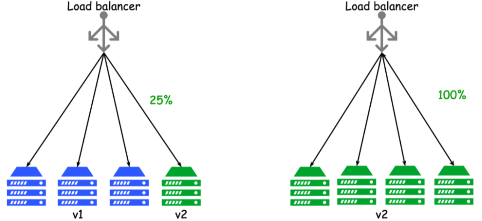 전체 인프라에 새로운 소프트웨어 버전을 릴리즈하여 모든 사용자가 사용할 수 있도록 하기 전에 변경 사항을 천천히 릴리즈함으로써 프로덕션 환경에 새로운 소프트웨어 버전을 도입하는 위험을 줄이는 기술