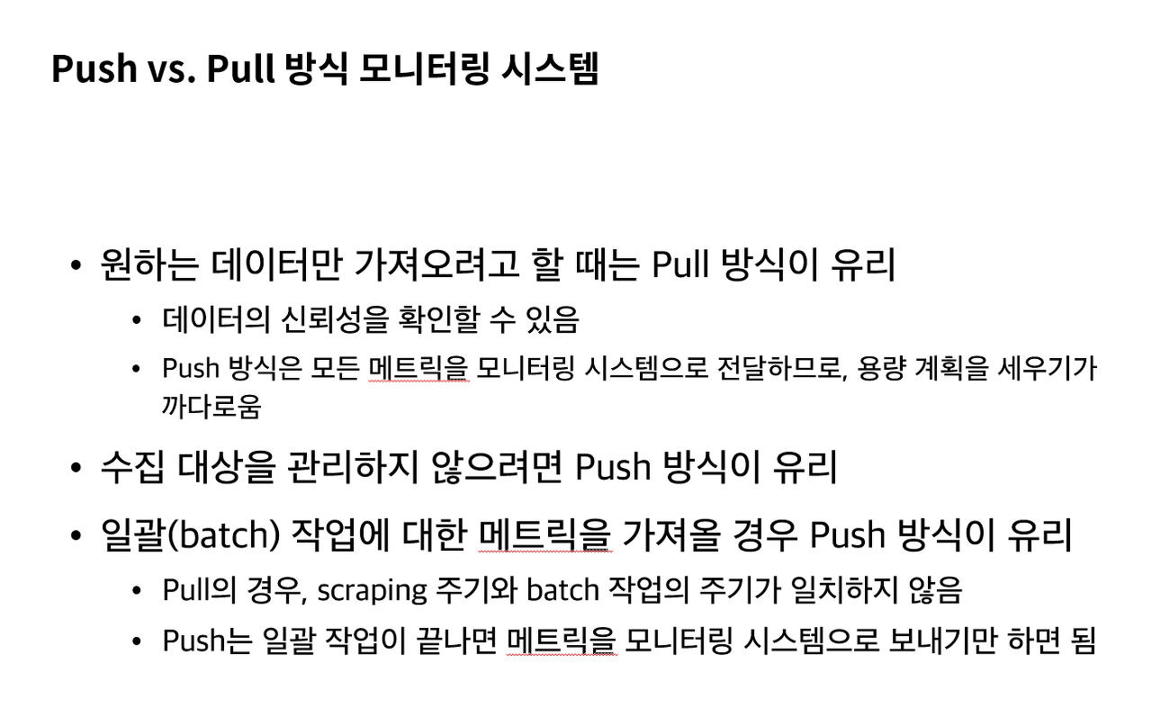 Prometheus, Datadog, collectd이 PULL 방식을 사용한다.